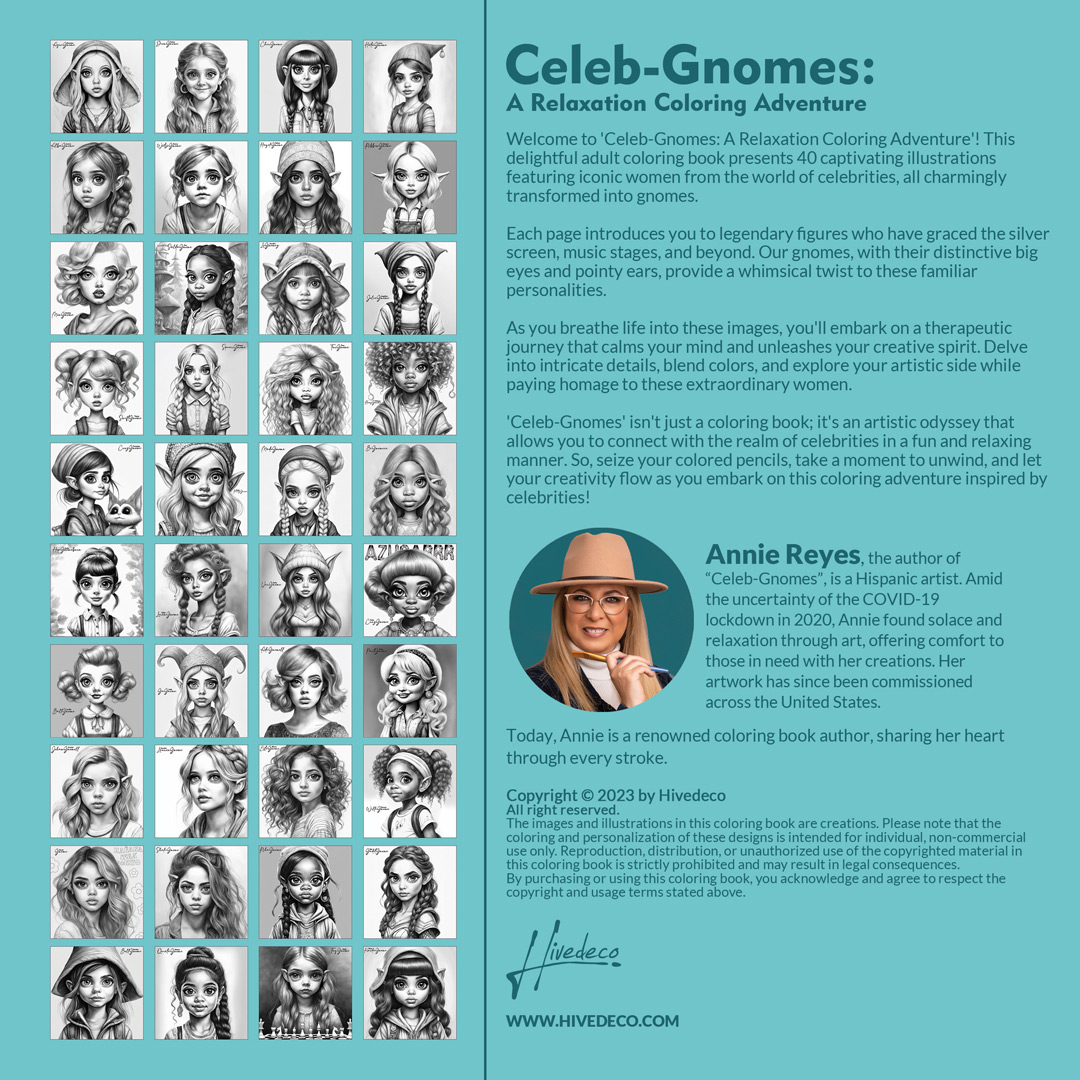 Delve into intricate details, blend colors, and explore your artistic side while paying homage to these extraordinary women. ‘Celeb-Gnomes’ isn’t just a coloring book; it’s an artistic odyssey that allows you to connect with the realm of celebrities in a fun and relaxing manner. So, seize your colored pencils, take a moment to unwind, and let your creativity flow as you embark on this coloring adventure inspired by celebrities!