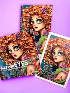 Now that you understand the relationship between coloring and well-being, it’s time to experience it firsthand. Our latest coloring book, “MesmerEYES Coloring Journey for Relaxation,” offers 40 captivating grayscale pages, each featuring one of Annie’s iconic ‘Nenas.’