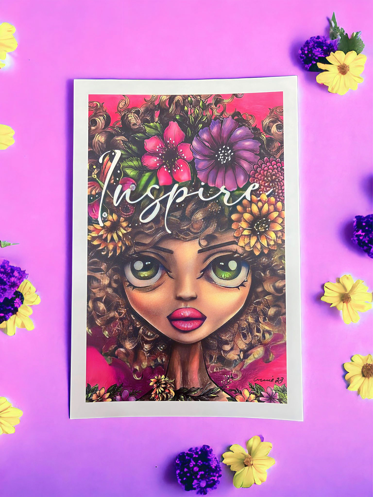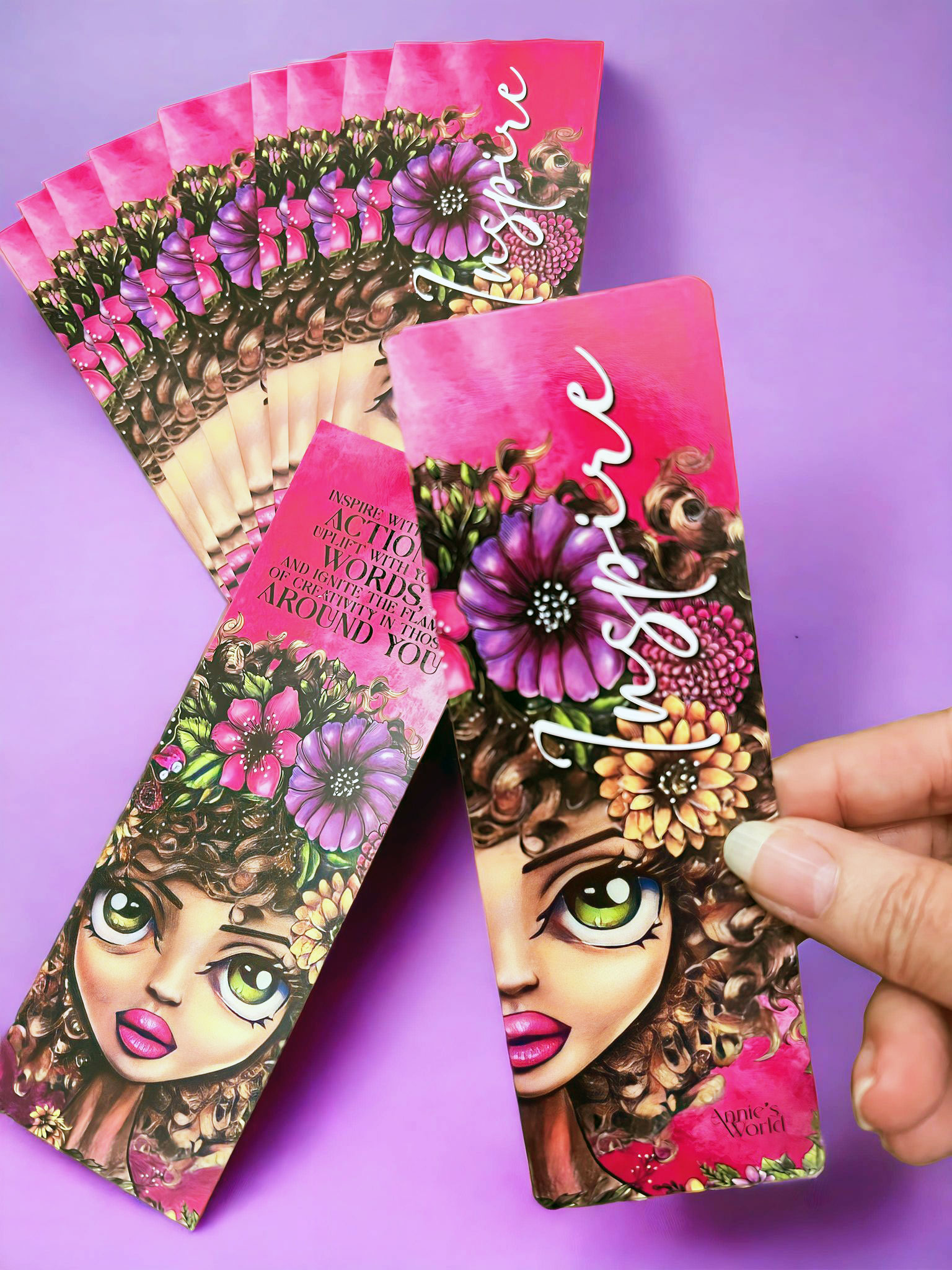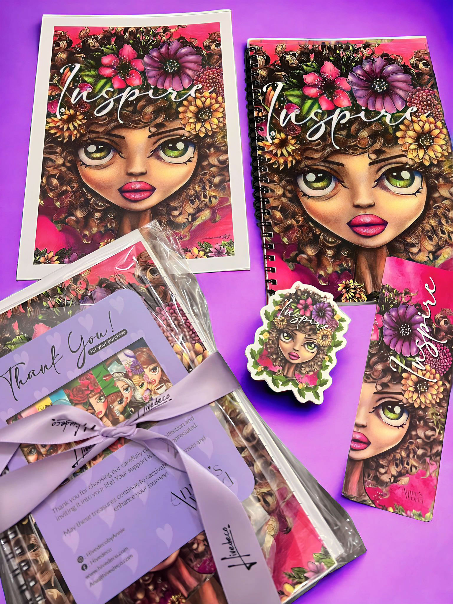 Prepare for a captivating creative journey with Annie’s “Inspire” Set! This exceptional collection comprises a 5.5″x 8.5″ notebook, a bookmark, a sticker, and a signed art print – all meticulously designed to spark your imagination.